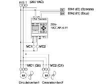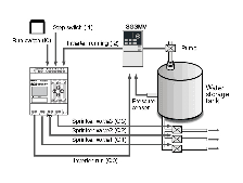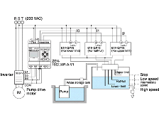 Basic water supply control is possible with the 61F Switch (without float) alone. However, bit logic is required for inverter control of high-speed operation (when the tank is empty) and slow-speed operation (when the tank is half-full).