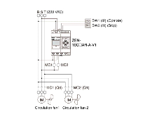 The ZEN can be used to start the circulation fans once the temperature inside the greenhouse exceeds a set level. The fans start up at different times to keep the startup current down.