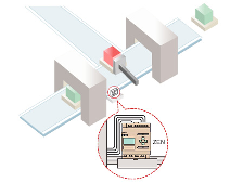 Zen is used as a conveyor shift unit. A sensor detects when a product has arrived, and inputs this to ZEN. ZEN then sends signals to stoppers and the Convyer Shifting Unit to shift the product to another conveyor.