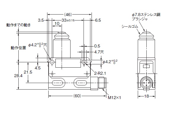 | アクチュエータ | シール・プランジャ形 φ7.8 ステンレス鋼押ボタン |