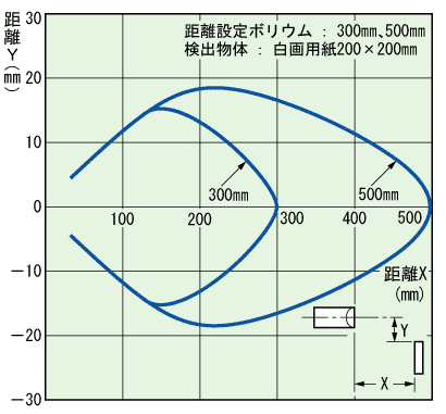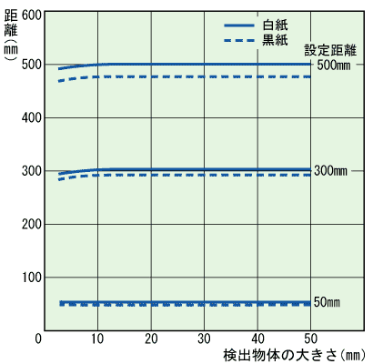 | 検出距離 | 白画用紙200×200mm、設定距離500mm: 5~500mm |