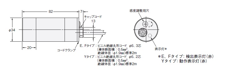 タイプ | 円柱型、静電容量形、非シールドタイプ |