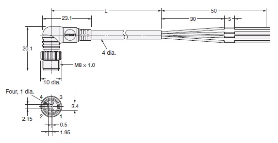 | Cable specifications | Type | Robot Cable | Outer diameter | 4 mm dia. | Number of wires | 4 cores | Cable length | 0.3 m |