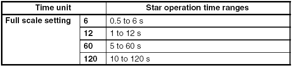 | Star-delta transfer time | selectable from 0.05 s, 0.1 s, 0.25 s, 0.5 s, 0.75 s and 1.0 s |