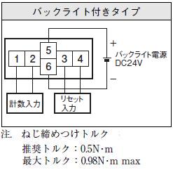 | 耐電圧 | 導電部端子と露出した非充電金属部間: AC1000V 50/60Hz 1min バックライト電源端子と計数入力端子/リセット端子間: AC1000V 50/60Hz 1min | |