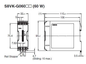 | Output | Rated output current | 4.5 A | Output voltage variable range | -10 to +15 % With V.ADJ | Maximum peak current | 5.4 A | Ripple | 150 mV(p-p) max. at 20 MHz | Static input variation influence | 0.4 % max. | Static load variation influence | 0.8 % max. | Ambient temperature variation influence | 0.05 %/℃ max. | Start up time | 700 ms typ. (at 100 VAC input) 500 ms typ. (at 200 VAC input) | Hold time | 20 ms typ. (at 100 VAC input) 90 ms typ. (at 200 VAC input) |