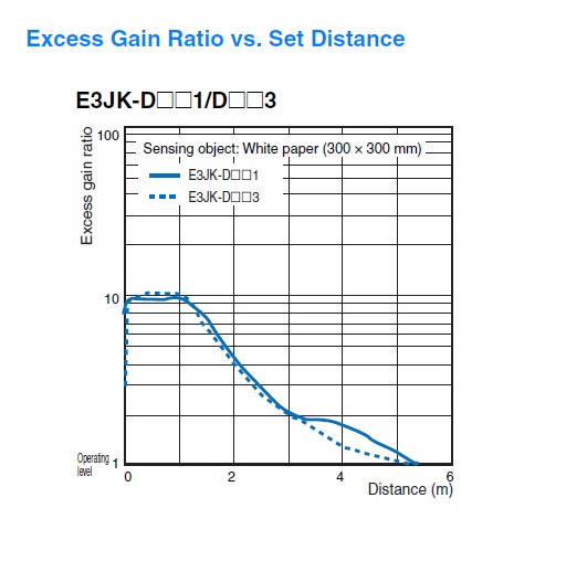 Excess gain ratio vs. setting distance
