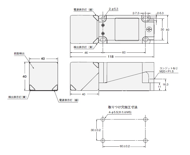 | 表示灯 | 電源表示灯(緑)、検出表示灯(黄) |