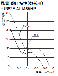 | 最大静圧(ノミナル値) | 50Hz: 42.1Pa 60Hz: 58.8Pa |
