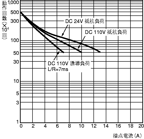 DC110V 10A (抵抗負荷) DC110V 7A (誘導負荷 (L/R=7ms)) |