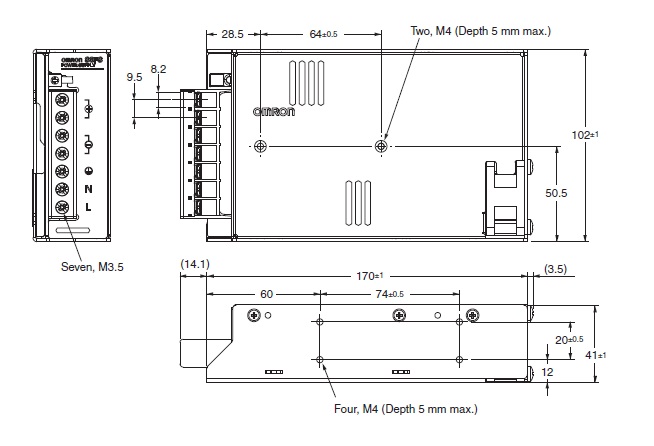 | Output | Rated output current | 14 A | Output voltage variable range | -10 to +15 % (With V.ADJ) | Ripple | 150 mV(p-p) max. | Static input variation influence | 0.5 % max. | Static load variation influence | 1.0 % max. | Ambient temperature variation influence | 0.05 %/℃ max. | Start up time | 1000 ms max. (at 100 VAC input) 1000 ms max. (at 200 VAC input) | Hold time | 30 ms typ. (at 100 VAC input) 30 ms typ. (at 200 VAC input) |