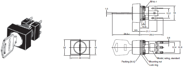 Key-type Selector Switch (Detachable) (Cylindrical 16-dia.)