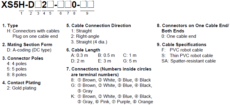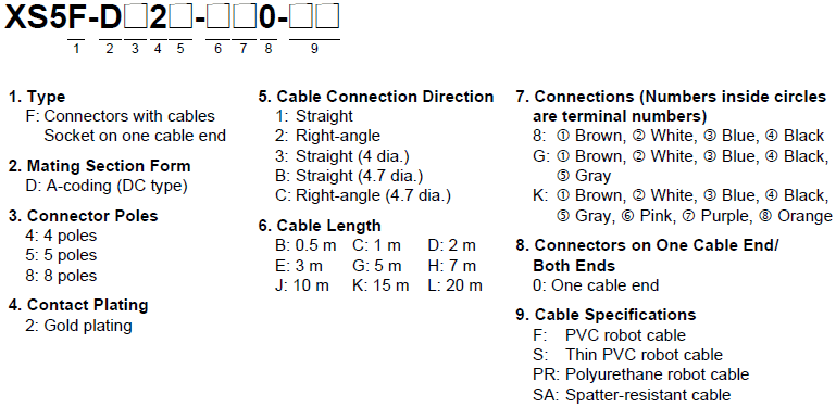 | 2 | XS5F-D421-D80-F | XS5F-D521-DG0-F | XS5F-D821-DK0-F | |