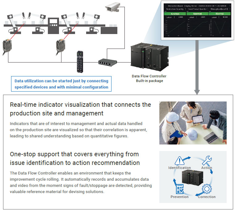 Start your data utilization journey smoothly by simply connecting the specified devices*1 and selecting packages pre-installed to the Data Flow Controller.