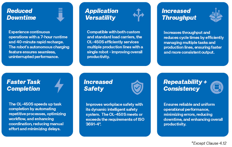 • Seamless Integration with Existing Mobile Robot Infrastructure: The OL-450S easily integrates with your current systems, minimizing setup time and maximizing efficiency.