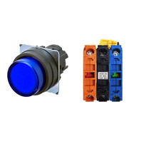 Pushbutton Switch (22-dia.), Lighted, Plastic bezel, Projected, Momentary, Button color: Blue, IP66, Screw terminal block, Contacts: NO/Lighting Unit/-, LED lamp color: Blue, LED Lamp voltage: 200/220/230/240 VAC
