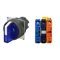 Selector Switch (22-dia.), Lighted, 3-position, Plastic bezel, Manual reset, Operation unit color: Blue (Transparent), IP66, Screw Terminal Block, Contacts: NC/Lighting Unit/NO, LED lamp color: Blue, LED Lamp voltage: 24 VAC/VDC