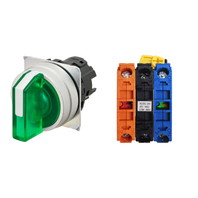 Selector Switch (22-dia.), Lighted, 3-position, Brushed metal bezel, Automatic reset on left, Operation unit color: Green (Transparent), IP66, Screw Terminal Block, Contacts: NO/Lighting Unit/NC, LED lamp color: Green, LED Lamp voltage: 200/220/230/240 VAC