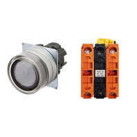 Pushbutton Switch (22-dia.), Lighted, Brushed metal bezel, Full guard, Alternate, Button color: White, IP66, Screw terminal block, Contacts: NC/Lighting Unit/NC, LED lamp color: White, LED Lamp voltage: 200/220/230/240 VAC