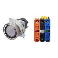 Pushbutton Switch (22-dia.), Lighted, Brushed metal bezel, Full guard, Momentary, Button color: White, IP66, Screw terminal block, Contacts: NO/Lighting Unit/NC, LED lamp color: White, LED Lamp voltage: 200/220/230/240 VAC