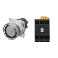 Pushbutton Switch (22-dia.), Lighted, Brushed metal bezel, Full guard, Momentary, Button color: White, IP66, Push-In Plus terminal block, Contacts: NC/Lighting Unit/NC, LED lamp color: White, LED Lamp voltage: 6 VAC/DC