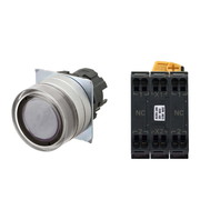 Pushbutton Switch (22-dia.), Lighted, Brushed metal bezel, Full guard, Momentary, Button color: White, IP66, Push-In Plus terminal block, Contacts: NC/Lighting Unit/NC, LED lamp color: White, LED Lamp voltage: 200/220/230/240 VAC