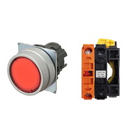 Pushbutton Switch (22-dia.), Lighted, Brushed metal bezel, Flat, Alternate, Button color: Red, IP66, Screw terminal block, Contacts: -/Lighting Unit/NC, LED lamp color: Red, LED Lamp voltage: 200/220/230/240 VAC