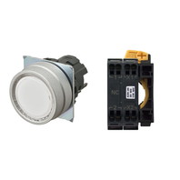 Pushbutton Switch (22-dia.), Lighted, Brushed metal bezel, Flat, Alternate, Button color: White, IP66, Push-In Plus terminal block, Contacts: -/Lighting Unit/NC, LED lamp color: White, LED Lamp voltage: 200/220/230/240 VAC