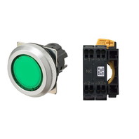 Pushbutton Switch (30-dia.), Lighted, Brushed metal bezel, Flat, Momentary, Button color: Green (Transparent), IP66, Push-In Plus terminal block, Contacts: NO/Lighting Unit/-, LED lamp color: Green, LED Lamp voltage: 200/220/230/240 VAC