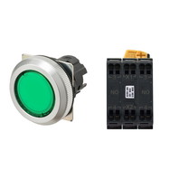 Pushbutton Switch (30-dia.), Lighted, Brushed metal bezel, Flat, Momentary, Button color: Green (Transparent), IP66, Push-In Plus terminal block, Contacts: NO/Lighting Unit/NO, LED lamp color: Green, LED Lamp voltage: 200/220/230/240 VAC