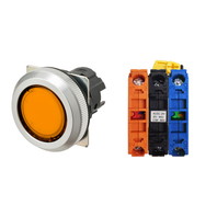 Pushbutton Switch (30-dia.), Lighted, Brushed metal bezel, Flat, Momentary, Button color: Orange (Transparent), IP66, Screw terminal block, Contacts: NC/Lighting Unit/NC, LED lamp color: Orange, LED Lamp voltage: 200/220/230/240 VAC