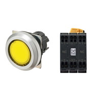 Pushbutton Switch (30-dia.), Lighted, Brushed metal bezel, Flat, Momentary, Button color: Yellow (Transparent), IP66, Push-In Plus terminal block, Contacts: NC/Lighting Unit/NC, LED lamp color: Yellow, LED Lamp voltage: 200/220/230/240 VAC