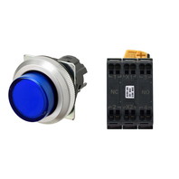 Pushbutton Switch (30-dia.), Lighted, Brushed metal bezel, Projected, Alternate, Button color: Blue, IP66, Push-In Plus terminal block, Contacts: NC/Lighting Unit/NC, LED lamp color: Blue, LED Lamp voltage: 6 VAC/DC