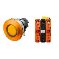 Pushbutton Switch (22-dia.), Lighted, Brushed metal bezel, Mushroom, Alternate, Button color: Orange, IP66, Screw terminal block, Contacts: NO/Lighting Unit/NC, LED lamp color: Orange, LED Lamp voltage: 200/220/230/240 VAC