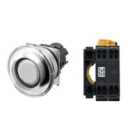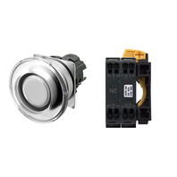 Pushbutton Switch (22-dia.), Lighted, Brushed metal bezel, Mushroom, Alternate, Button color: White, IP66, Push-In Plus terminal block, Contacts: -/Lighting Unit/NC, LED lamp color: White, LED Lamp voltage: 200/220/230/240 VAC