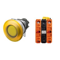 Pushbutton Switch (22-dia.), Lighted, Brushed metal bezel, Mushroom, Alternate, Button color: Yellow, IP66, Screw terminal block, Contacts: NC/Lighting Unit/NC, LED lamp color: Yellow, LED Lamp voltage: 200/220/230/240 VAC