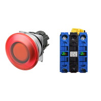 Pushbutton Switch (22-dia.), Lighted, Brushed metal bezel, Mushroom, Momentary, Button color: Red, IP66, Screw terminal block, Contacts: NO/Lighting Unit/NC, LED lamp color: Red, LED Lamp voltage: 200/220/230/240 VAC