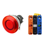 Pushbutton Switch (30-dia.), Lighted, Brushed metal bezel, Mushroom, Momentary, Button color: Red (Transparent), IP66, Screw terminal block, Contacts: NO/Lighting Unit/NC, LED lamp color: Red, LED Lamp voltage: 24 VAC/DC