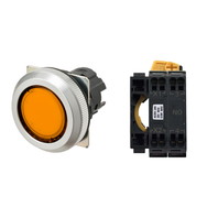 Pushbutton Switch (30-dia.), Lighted, Brushed metal bezel, Flat, Alternate, Button color: Orange (Transparent), IP66, Screw terminal block, Contacts: NC/Lighting Unit/NC, LED lamp color: Orange, LED Lamp voltage: 200/220/230/240 VAC