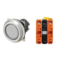Pushbutton Switch (30-dia.), Lighted, Brushed metal bezel, Flat, Alternate, Button color: White (Transparent), IP66, Screw terminal block, Contacts: NO/Lighting Unit/NC, LED lamp color: White, LED Lamp voltage: 200/220/230/240 VAC
