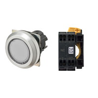 Pushbutton Switch (30-dia.), Lighted, Brushed metal bezel, Flat, Alternate, Button color: White (Transparent), IP66, Screw terminal block, Contacts: NC/Lighting Unit/NC, LED lamp color: White, LED Lamp voltage: 200/220/230/240 VAC