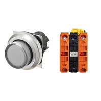 Pushbutton Switch (30-dia.), Lighted, Brushed metal bezel, Projected, Alternate, Button color: White (Transparent), IP66, Screw terminal block, Contacts: NC/Lighting Unit/NC, LED lamp color: White, LED Lamp voltage: 200/220/230/240 VAC