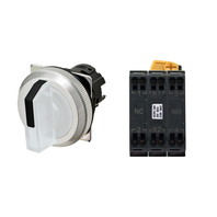 Selector Switche (30-dia.), Lighted, 3-position, Brushed metal bezel, Automatic reset on left and right, Operation unit color: White (Transparent), IP66, Push-In Plus Terminal Block, Contacts: NO/Lighting Unit/NO, LED lamp color: White, LED Lamp voltage: 200/220/230/240 VAC