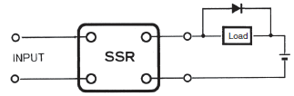 When an L load, such as a solenoid or electromagnetic valve is connected, connect a diode that prevents counter-electromotive force. If the counter-electromotive force exceeds the withstand voltage of the Solid-state Relay output element, it could result in damage to the Solid-state Relay output element.